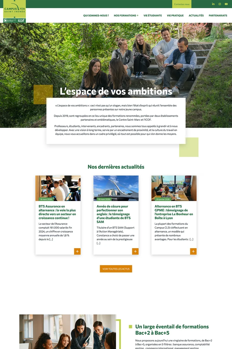 L’espace de vos ambitions : depuis 2019, toutes vos formations Bac+2 à Bac+5 sur le Campus Lyon Saint Irénée.