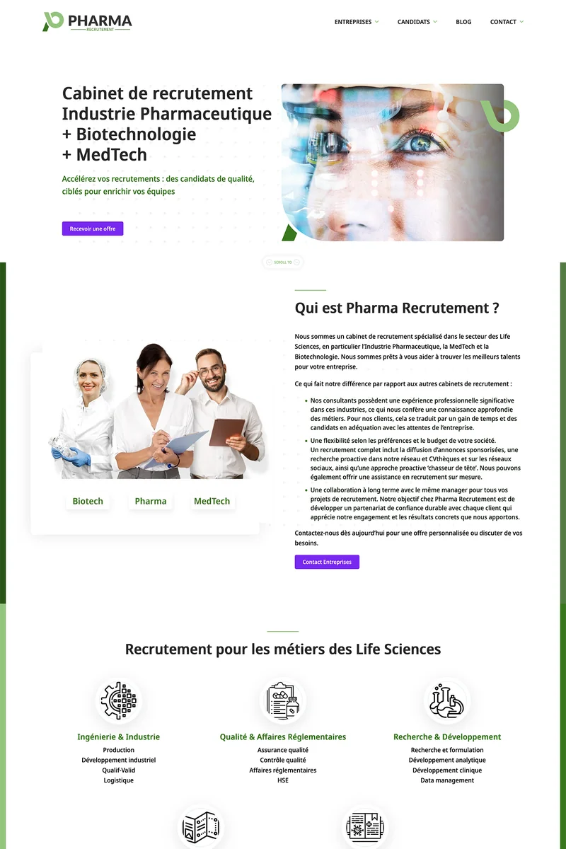 Création du site WordPress de Pharma Recrutement, cabinet de recrutement spécialisé dans les Life Sciences